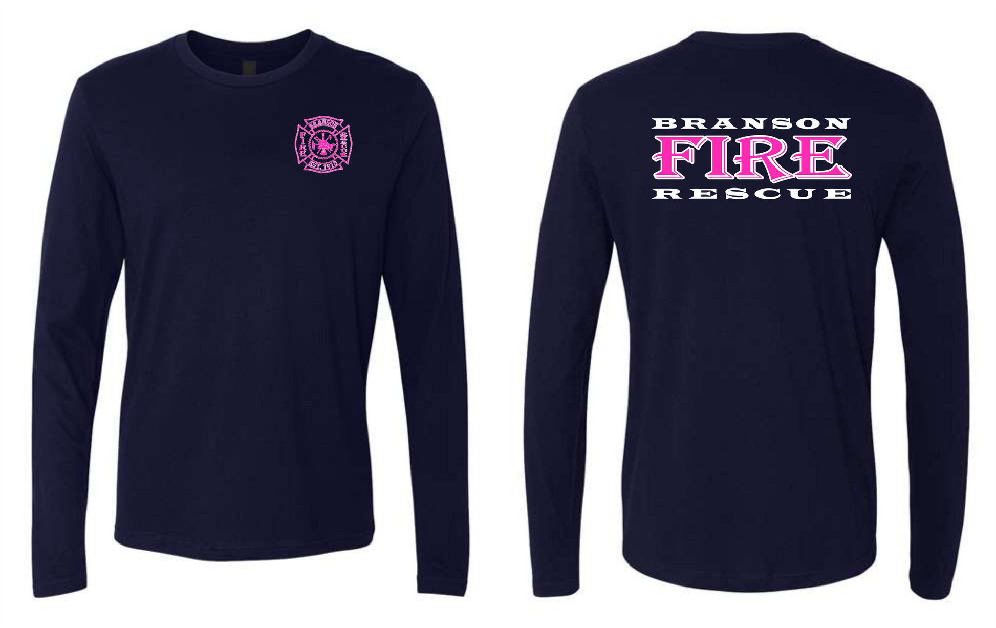 Shirt will have Branson Fire-Rescue logo on the left chest, Branson Fire Rescue print on back- PINK PRINTS
